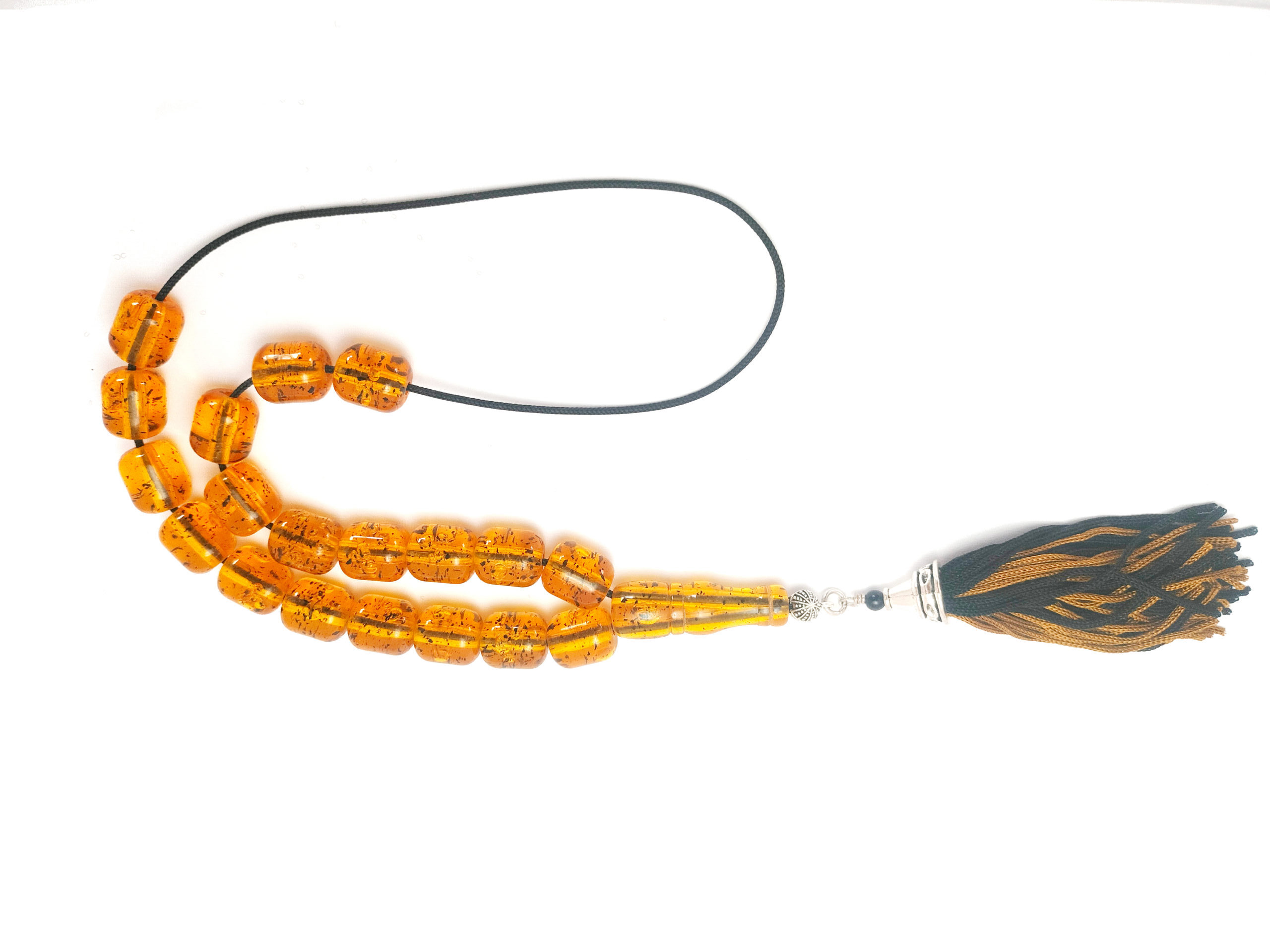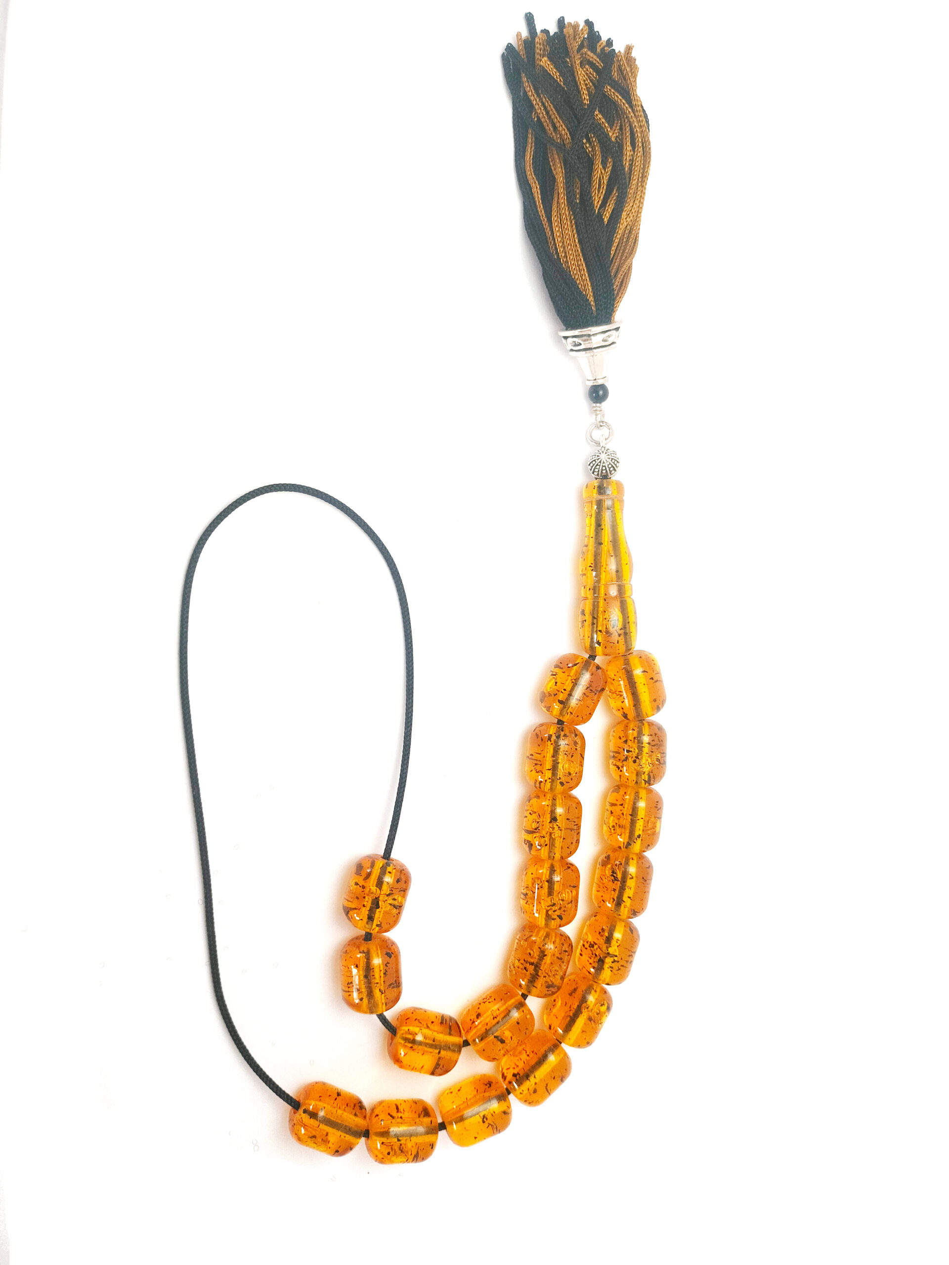 Κομπολόι ακρυλικό 19 χάνδρες (διάμετρος 13×11) σκούρο κίτρινο με φούντα